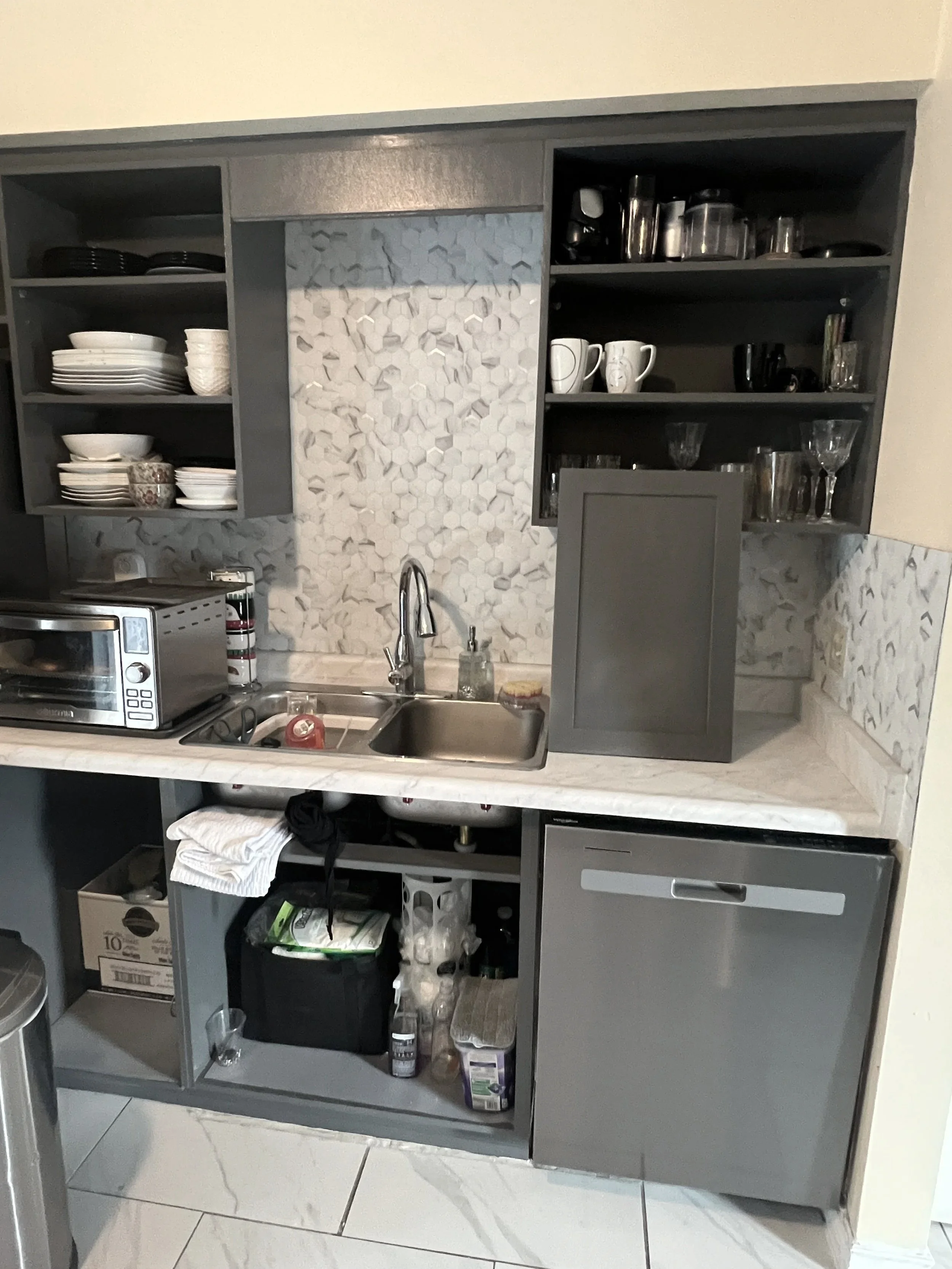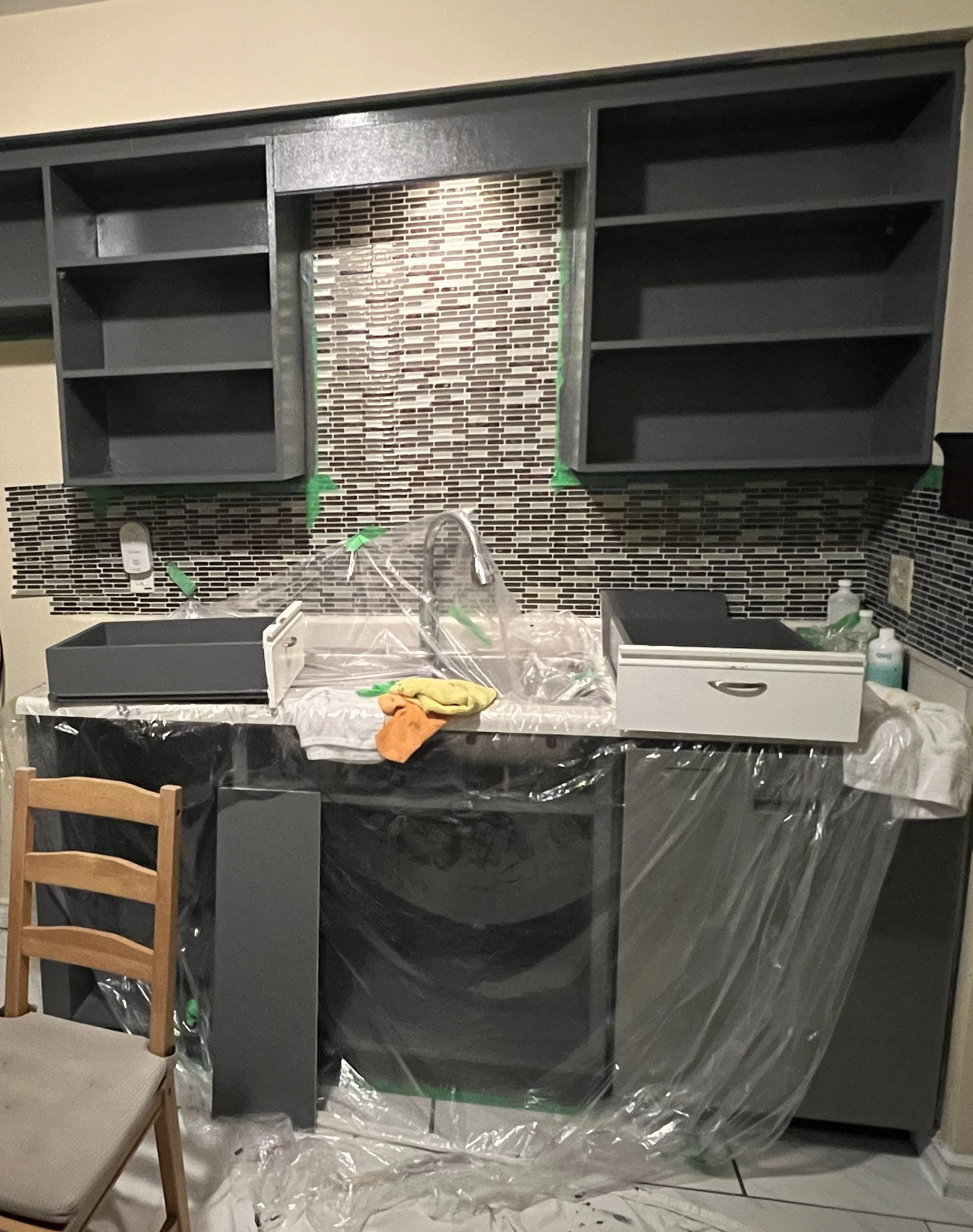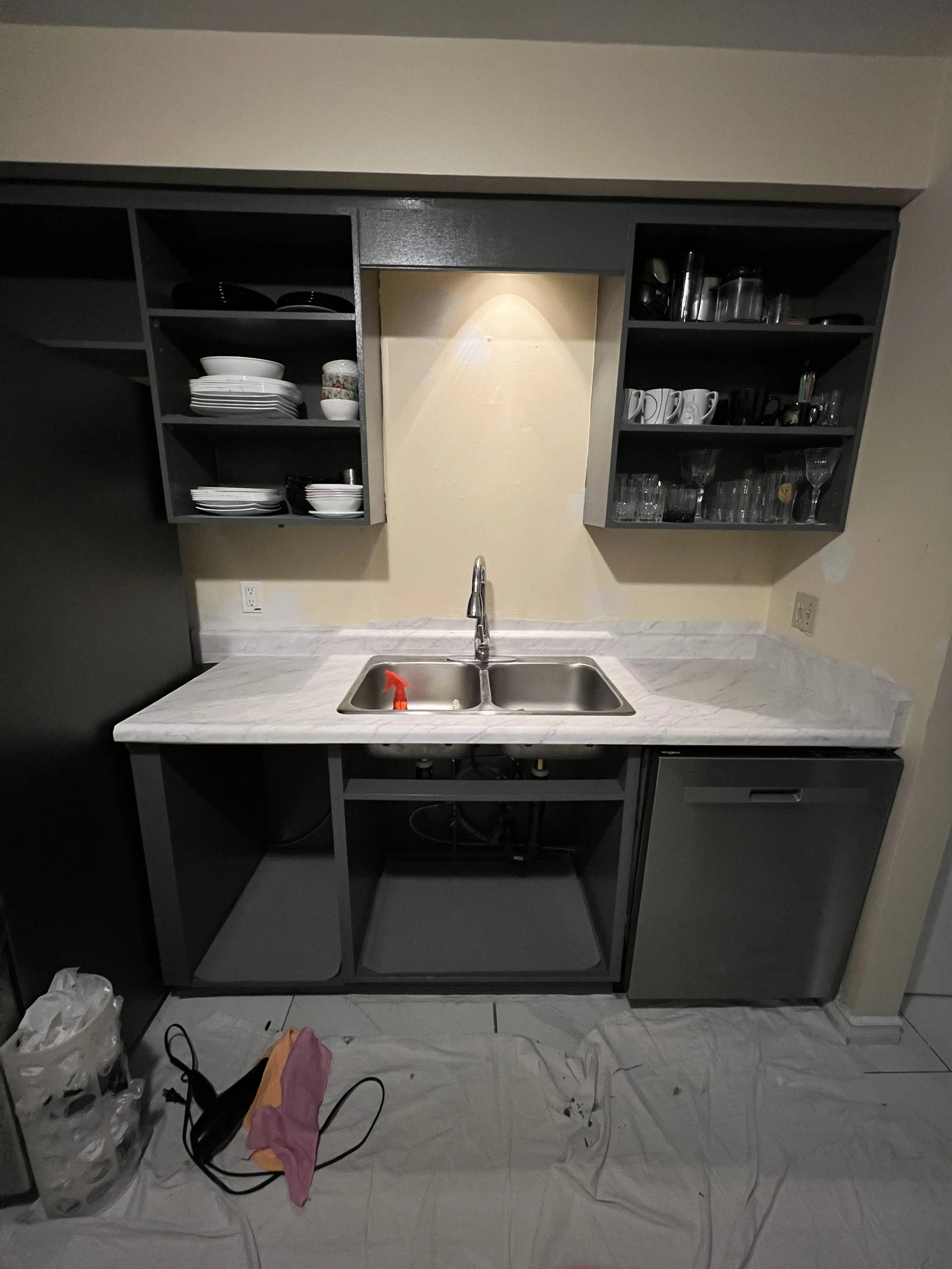 First, we painted the cabinets inside and out.