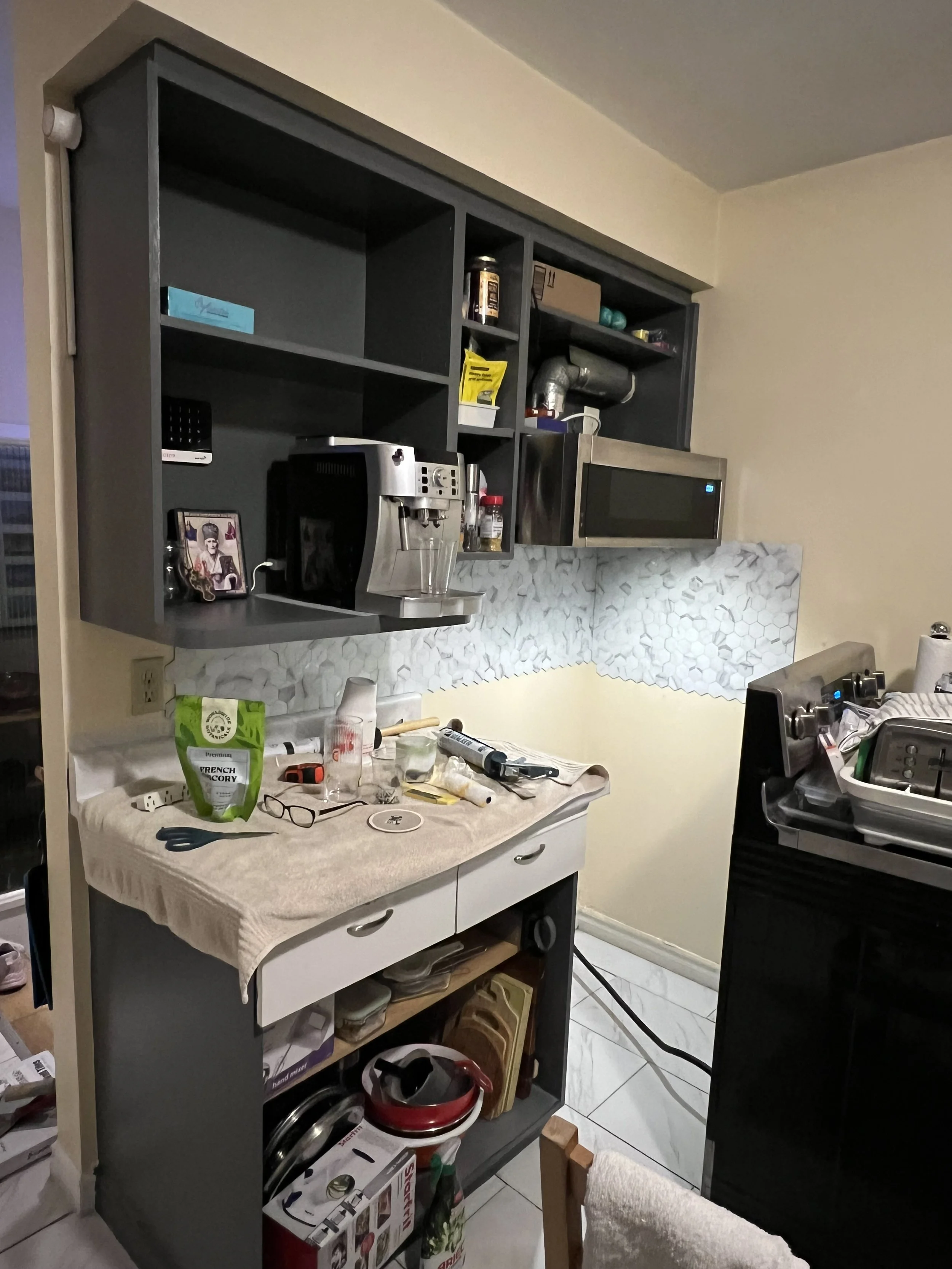 3. After that, we installed a peel-and-stick backsplash.