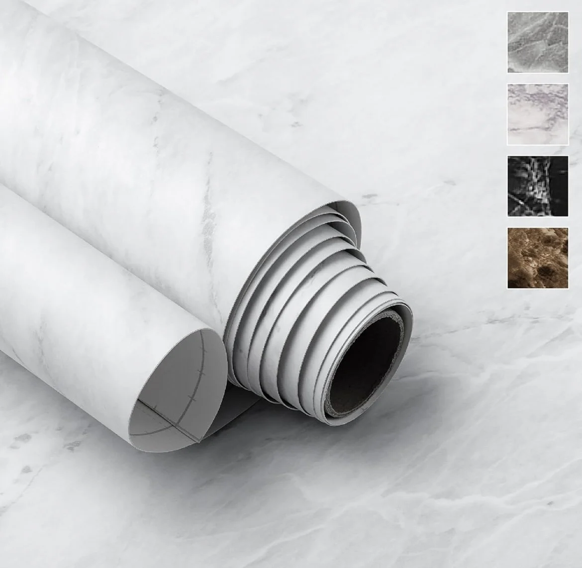 2. Then we applied an industrial-grade contact paper to refresh the yellow countertops.